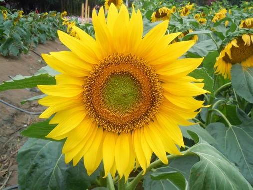 園內(nèi)盛開的百萬朵向日葵,追隨著太陽競相怒放,它以鮮艷奪目的黃色花瓣和挺拔的身軀以及高昂的臉盤、向上的情感,向我們傳遞著健康、茁壯,朵朵的葵花是追求光明和幸福的象征……