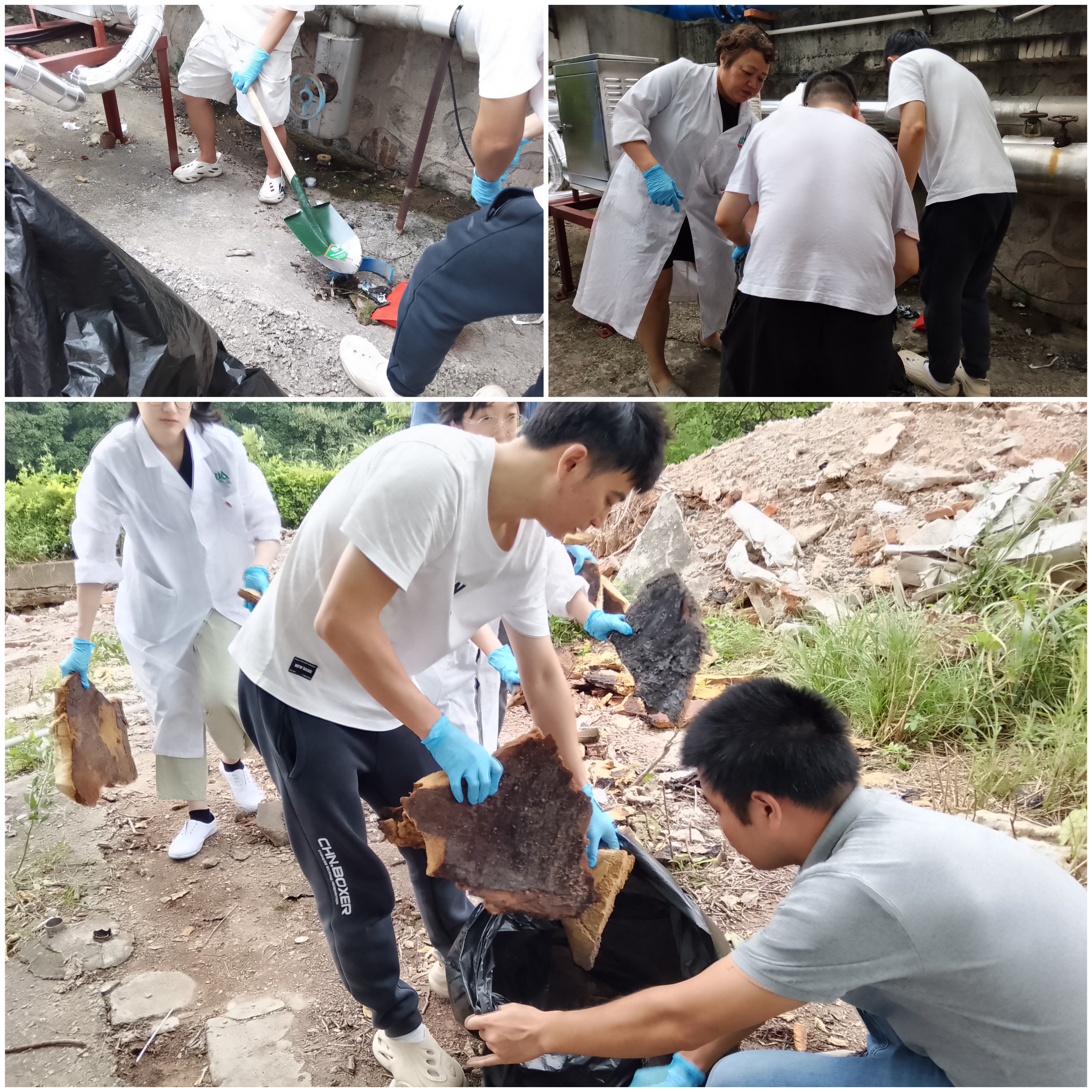 第十黨支部的黨員帶領(lǐng)團員對質(zhì)量控制部大樓周圍環(huán)境進行清理
