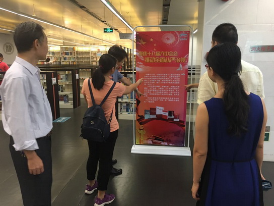 這次的黨小組成員閱讀活動,我們主要是安排在“兩學(xué)一做”閱讀區(qū)進(jìn)行,大家先一起查閱了圖書館有關(guān)“兩學(xué)一做”專題推薦書目,在支部葉書記的帶領(lǐng)下,先從圖書館的一些宣傳海報(bào)開始進(jìn)行重溫學(xué)習(xí),內(nèi)容包括了社會主義核心價(jià)值觀,聚焦十八屆六中全會推動全面從嚴(yán)治黨等,接著還選擇了一些相關(guān)的書目《深入學(xué)習(xí)習(xí)近平總書記系列重要講話》、《信仰力量》、《十八大以來廉政新規(guī)定》、《反腐倡廉新思考》《黨員干部廉潔自律十二講》等進(jìn)行學(xué)習(xí)和分享,期間,葉書記也特別提問了我們成員一些關(guān)鍵詞的內(nèi)容,比如:兩學(xué)一做、三嚴(yán)三實(shí)、四個(gè)堅(jiān)持、三大支撐、兩個(gè)走在前列、四個(gè)意識、四個(gè)全面、四個(gè)自信、四個(gè)合格等等。最后大家各自分享了自己的閱讀經(jīng)歷或感受,幾乎所有的人都有一個(gè)共同認(rèn)知,就是覺得閱讀總是格外的愜意,每當(dāng)閱讀的時(shí)候,心里總有一種充實(shí)的感覺,一種富足的感覺,這種感覺是真實(shí)的擁有,真實(shí)的財(cái)富。其實(shí),我們每個(gè)人都有不同的閱讀需求,但總有一本書可以為他帶來啟迪,帶來寬慰,帶來快樂,走進(jìn)閱讀的世界,而后又帶著他走向更遠(yuǎn)的地方。湊巧的是,我們在活動的時(shí)候偶遇了我們部門機(jī)修工宋福亭,他也在看書——《這樣做人很成功》,我們都為他點(diǎn)贊,他說他只有有空,都會過來閱讀,葉書記表揚(yáng)了他,還和他一起分享學(xué)習(xí)感受。