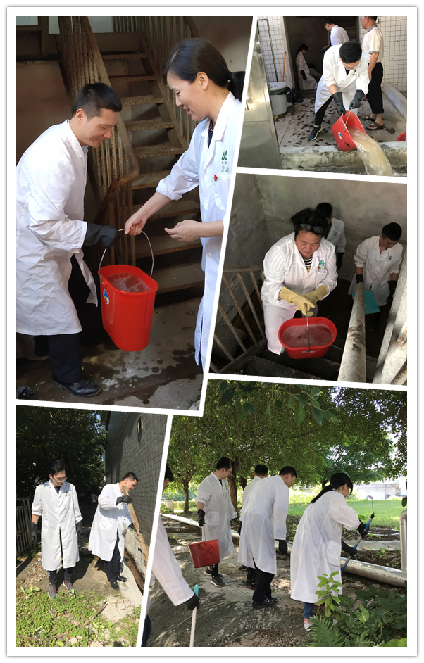 質(zhì)管部一樓后面樓道積水很深,樓梯濕滑,在支部書記張彬的帶領(lǐng)下,同志們發(fā)揮黨員先鋒模范帶頭作用,揮汗如雨,將積水一桶一桶的往外接龍傳遞,最終把樓道積水、垃圾清理干凈,并逐一檢查周圍排水管道,清除周圍落葉和淤泥,拔除周邊雜草,疏通排水系統(tǒng),做好清潔和防蚊措施。烈日當(dāng)空照,黨員同志們干得熱火朝天,顧不上擦去臉上的汗水。