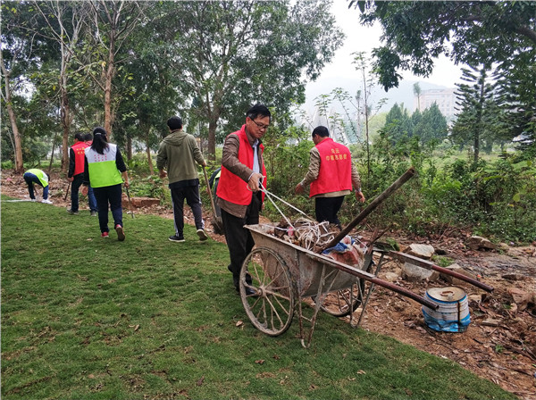 隨著白云山前門文化廣場綜合整治工程的落實,廣場面貌已煥然一新,但東花園園區(qū)內(nèi)仍存在部分垃圾雜物,影響衛(wèi)生環(huán)境。為了創(chuàng)造整潔、優(yōu)美、文明的花園環(huán)境,在總廠黨委委員劉漢明、黨支部副書記田彬的帶領(lǐng)下,第六黨支部黨員群眾前往東花園開展衛(wèi)生清潔活動。盡管當(dāng)天下著小雨,黨員群眾們依然干勁十足,大家分工合作,清理出大量垃圾雜物,大大提升了東花園環(huán)境質(zhì)量。