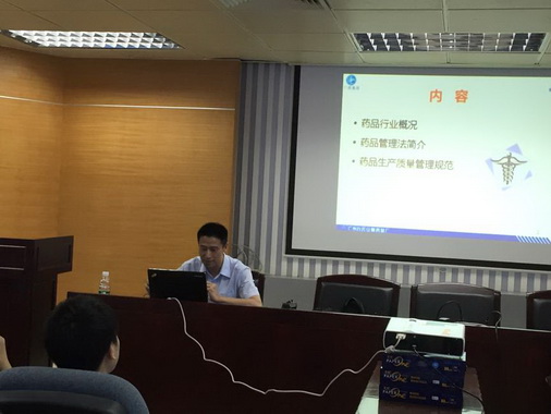 質(zhì)管部質(zhì)檢科科長梁永輝講授《藥政法規(guī)與GMP》