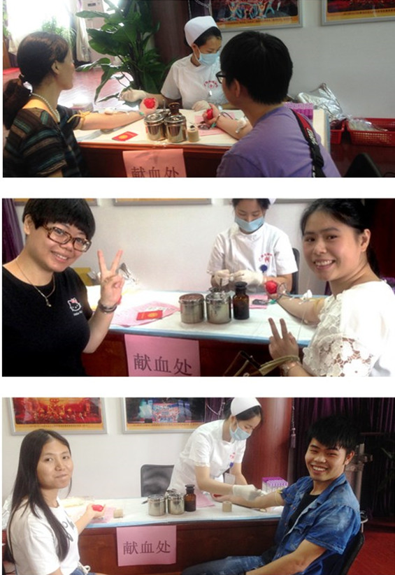 上午8:40,在血站人員來臨之際,38名志愿獻(xiàn)血的員工早已到達(dá)獻(xiàn)血集中地點——排練廳等候。在現(xiàn)場工作人員協(xié)助下,填表、排隊登記、檢查血型、抽血,一切井然有序。總廠每個部門員工都積極參與,有來自制造部的,有來自倉儲部的,也有來自質(zhì)量管理部的……獻(xiàn)血隊伍中,有第一次獻(xiàn)血的員工,既緊張又興奮,也有曾多次獻(xiàn)血的員工,神態(tài)自若;面對抽血,大家談笑風(fēng)生,現(xiàn)場的氣氛愉快而輕松?,F(xiàn)場工作人員為每一位獻(xiàn)血員工送上溫暖的葡萄糖水和蛋糕,叮囑每一位獻(xiàn)血員工,獻(xiàn)血后要多喝水、多注意休息,讓愛心也溫暖著每一位獻(xiàn)血員工?;顒蝇F(xiàn)場更準(zhǔn)備了折疊床、急救箱等,以備急需之用??粗鴱氖直壑胁粩嗔鞒龅囊蠹t獻(xiàn)血,我們都感到無比的高興和自豪,我們鮮血可以挽救處于危急的生命,每人獻(xiàn)出一滴血,將匯成生命的海洋。