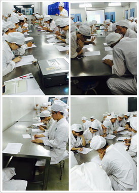 第二制造部總質檢吳紅斌、工藝員方燕娜、屈專專作為授課者分別就質量和工藝方面的知識進行了深入的講解;車間主任劉盛、肖沛君、林榮洲、孫忠平根據(jù)各車間生產(chǎn)實際情況,對崗位標準操作規(guī)程及清潔、清場等知識進行了細致的培訓。由于不同崗位所需要掌握的知識不一致,崗位要求也有所區(qū)別,此次將生產(chǎn)車間和包裝車間的員工分開進行培訓,考試時根據(jù)崗位類別分開進行考核。根據(jù)培訓人員不同制定合適的培訓課程內容,培訓試題也根據(jù)人員分類編制出不同難易程度的試卷,使得此次培訓更具有針對性。