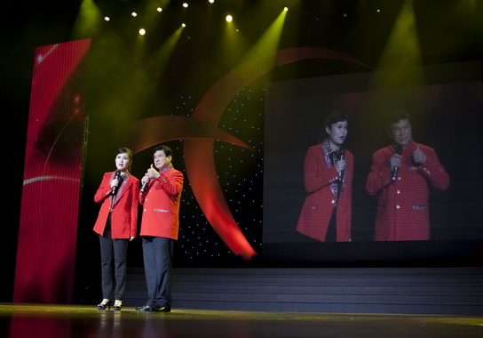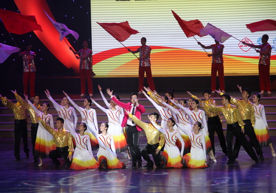 文藝表演在《愛(ài)心滿人間》悠揚(yáng)的歌聲中拉開(kāi)了序幕。根據(jù)企業(yè)40年的發(fā)展歷程,演出分為風(fēng)雨兼程、陽(yáng)光路上、走向輝煌三個(gè)主要篇章,并在同唱中國(guó)夢(mèng)的尾聲中圓滿結(jié)束。整個(gè)文藝演出如行云流水,精彩紛呈、感人至深。其中陳總、周志魁書(shū)記、黃健主席、劉漢明副廠長(zhǎng)帶來(lái)的男聲四重唱《游擊隊(duì)之歌》《三百六十五里路》唱出了創(chuàng)業(yè)階段的激情與艱辛,也掀起了整個(gè)大會(huì)的高潮;男女對(duì)唱 《逛總廠》、音樂(lè)快板舞《總廠放歌》等節(jié)目彰顯了企業(yè)不斷發(fā)展繁榮的朝氣蓬勃、欣欣向榮;由著名喜劇表演藝術(shù)家:趙世林、李晶晶表演的喜劇小品 《超級(jí)明星來(lái)賀彩》以歡樂(lè)的對(duì)白、精彩的模仿表達(dá)了他們對(duì)企業(yè)40周年的祝賀;由廣州雜技團(tuán)表演的 《中國(guó)力量》寓意不惑之年的白云山總廠,將以更強(qiáng)大的力量奮勇向前,開(kāi)創(chuàng)新的輝煌。無(wú)論是飽含深情的朗誦、優(yōu)美多姿的舞蹈還是婉轉(zhuǎn)高亢的歌聲,都為在場(chǎng)的每位員工帶來(lái)深深的感動(dòng),一陣又一陣?yán)坐Q般的掌聲表達(dá)了全體員工對(duì)40年的白云山滿懷的深情、驕傲和祝福!