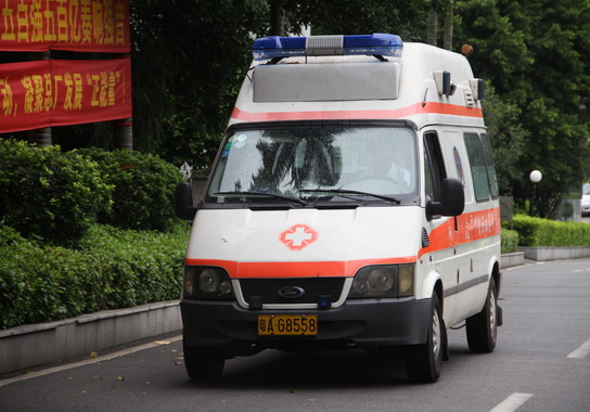 演練:一名腿部受傷的員工被擔架抬到安全區(qū),救護車鳴笛駛來