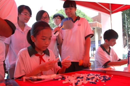 學(xué)生積極參與抗之霸商標(biāo)積木游戲