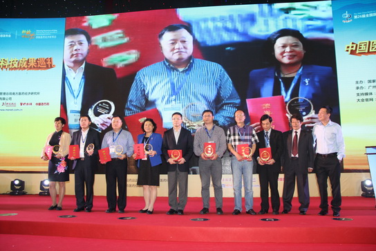白云山制藥總廠廠長、金戈研發(fā)總負(fù)責(zé)人朱少璇教授(左四)上臺(tái)領(lǐng)獎(jiǎng)