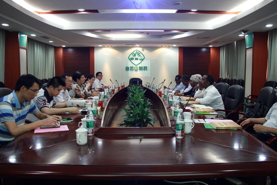 參觀后,雙方在第一會議室進(jìn)行了友好和深入的交流合作。廣藥集團(tuán)副總經(jīng)理劉菊妍在會上介紹了廣藥集團(tuán)發(fā)展簡況、產(chǎn)品情況,總廠藥研所博士劉毅介紹了總廠發(fā)展及科技創(chuàng)新情況。哈瓦?哈桑?穆哈默德部長對廣藥白云山眾多產(chǎn)品產(chǎn)生了濃厚的興趣,包括總廠抗生素、白云山金戈、王老吉涼茶、中一安宮牛黃丸等,并期望下一步在產(chǎn)品等方面加強(qiáng)合作,實現(xiàn)共贏。